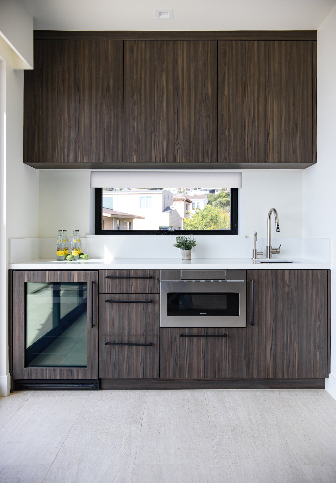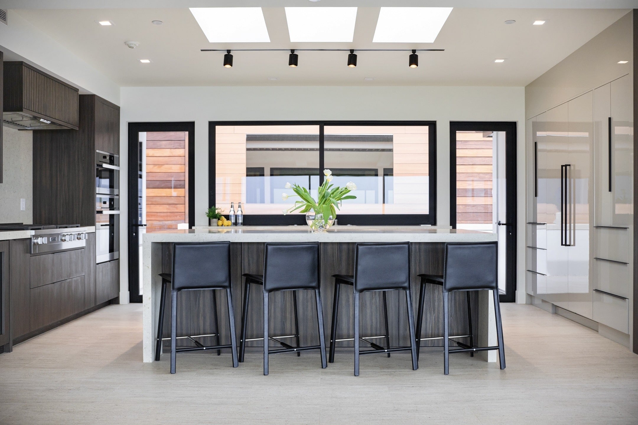 She wanted light and bright, he wanted moody wood tones; the answer was found in the contrast. This relaxing home embodies the idea that simplicity is luxury—in keeping with the stunning natural surroundings of an expansive ocean view and the reinventing of a 1960’s style hillside home. It’s California cool but elevated, with light walls offset by furnishings and architectural elements in dark neutrals.
